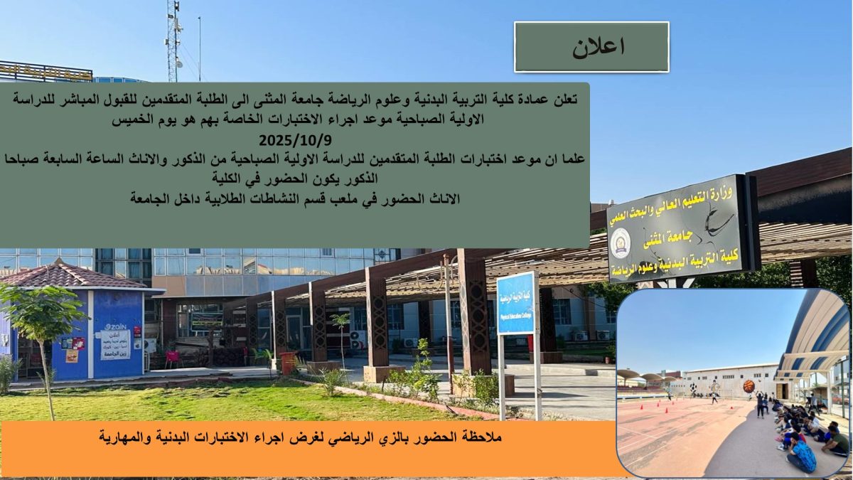 اقيمت اليوم على قاعة كلية التربية البدنية وعلوم الرياضة جامعة المثنى محاضرة نوعية لطلبة الدراسات العليا بعنوان (الاحتراف الرياضي ومشكلاته النفسية) ألقاها الاستاذ الدكتور محمد عبد […]